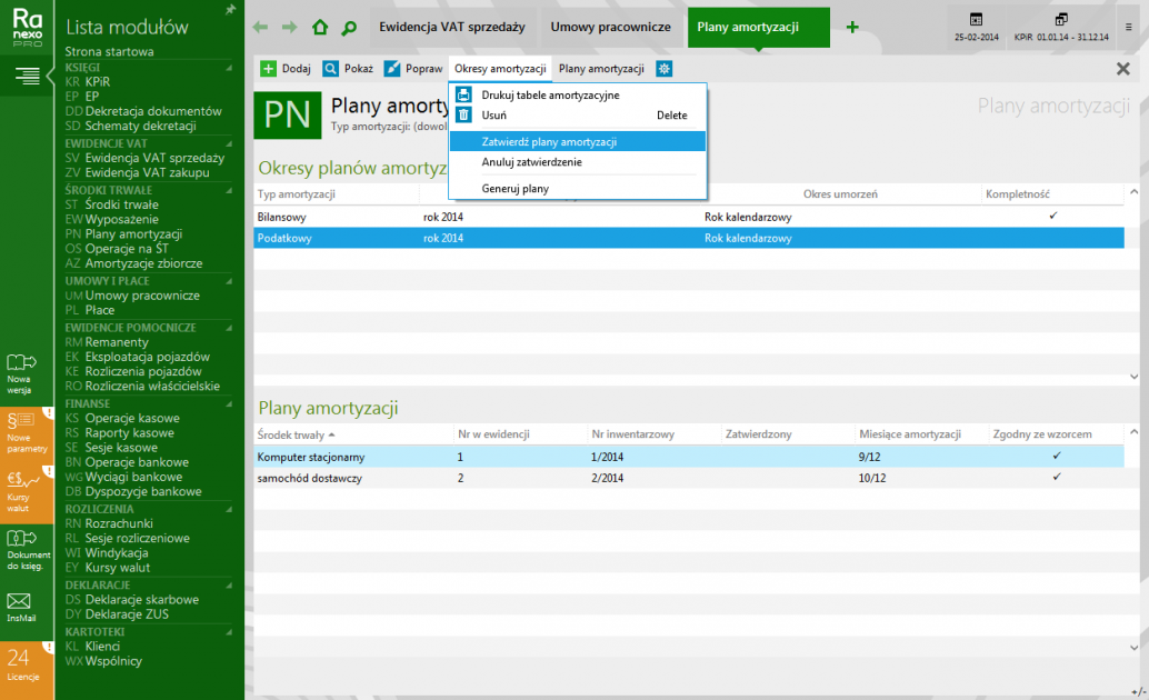 - Ewidencja środków trwałych i wartości niematerialnych i prawnych oraz operacji związanych z nimi.
