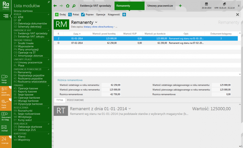- Ewidencje pomocnicze: przejazdów, remanentów dla wszystkich form księgowości.
