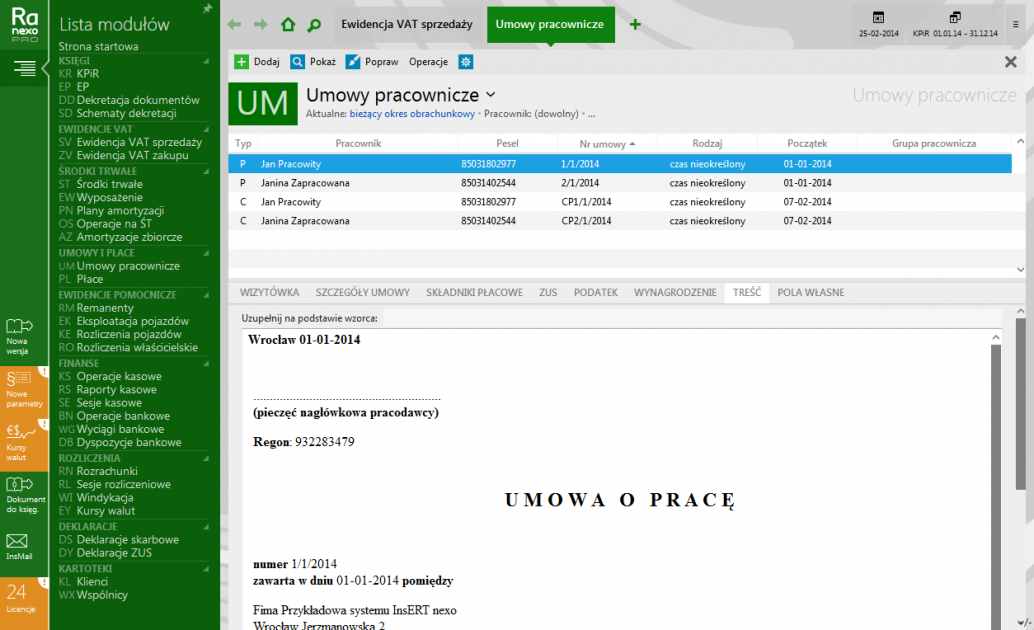 - podstawowa obsługa wynagrodzeń: ewidencja osobowa, umów cywilnoprawnych oraz umów o pracę;